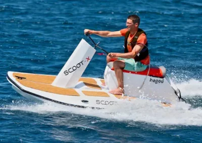 Le Scoot-X est un scooter des mers tout électrique nouvelle génération. A la fois bateau, scooter et paddle, il s’adresse autant aux particuliers qu’aux professionnels.